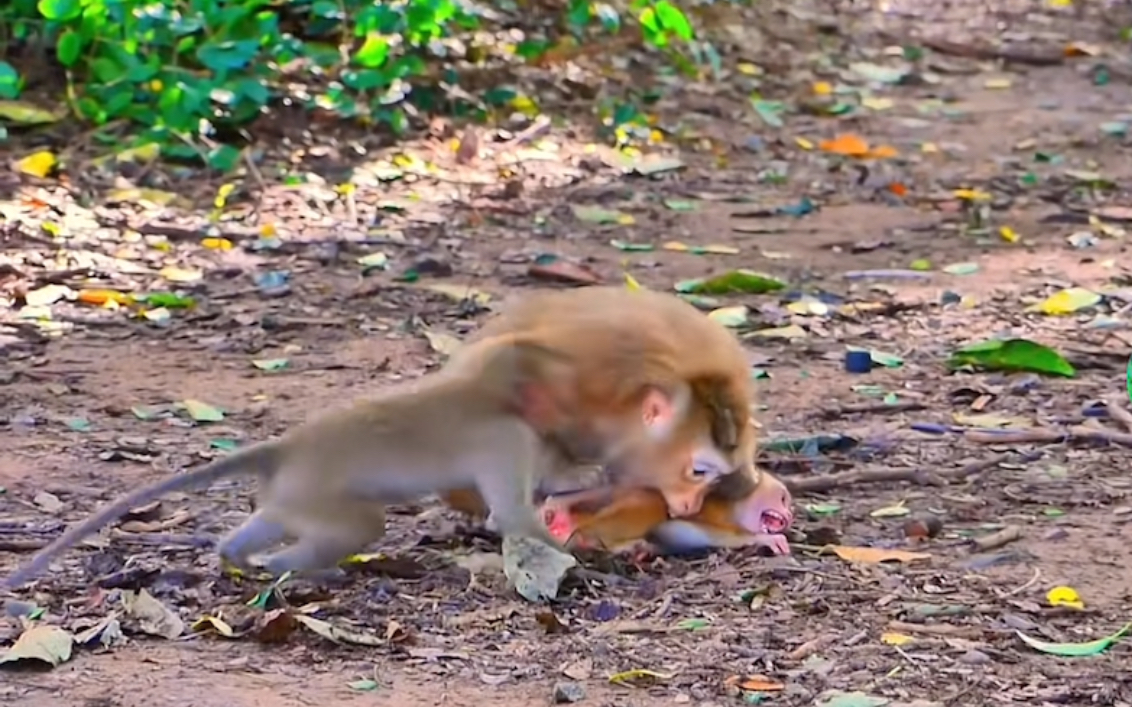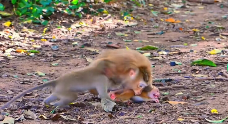 In a shocking and heartbreaking incident caught on camera in a forest reserve in Southeast Asia, a baby monkey came close to losing its life after being savagely attacked by a much larger, aggressive adult monkey. The scene, which unfolded rapidly in front of stunned onlookers and wildlife photographers, has sparked a discussion among primate experts and animal lovers about the complex social dynamics, territorial instincts, and aggression within monkey troops.