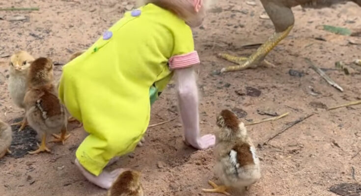 Tags: baby monkey, hen attack, unusual animal encounters, animal behavior, wildlife rescue, interspecies conflict