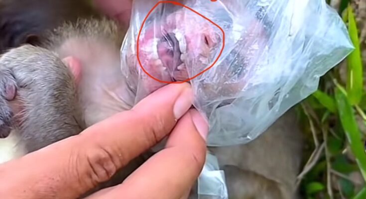 A Baby Monkey Struggles to Breathe as Plastic Bag Covers Its Face — A Silent Cry for Help from Nature