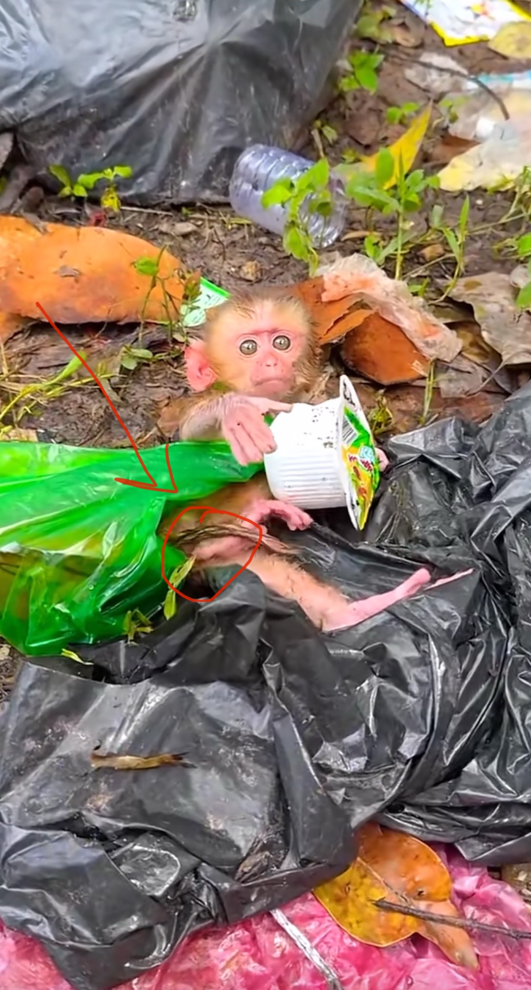 In a quiet corner of a crowded town, where piles of discarded waste stretch farther than the eye can see, an extraordinary and heartbreaking discovery was made. Amid the plastic bags, rotting food scraps, and broken debris, a tiny baby monkey lay trembling, weak from hunger and exhaustion. The little creature had apparently been trapped in the garbage dump for days, unnoticed by passersby and unable to escape the towering piles of waste surrounding it.