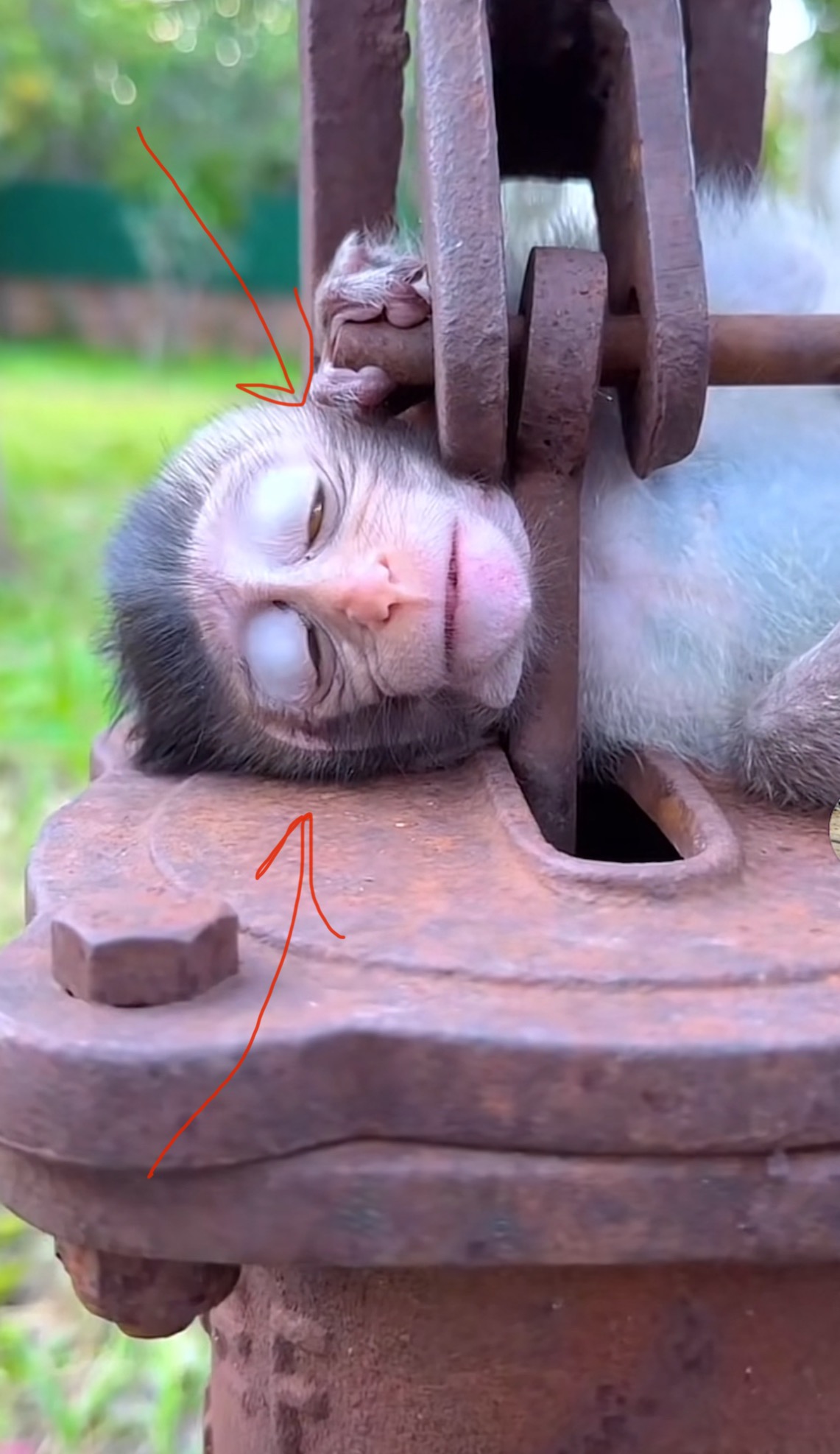 This young monkey, barely old enough to navigate its environment independently, was reportedly restrained using a tight cord fastened to a rigid metal rod. The animal was left exposed to the elements, unable to access food, water, or shelter. Witnesses reported hearing the monkey’s distress calls, but by the time help arrived, it had already endured hours of unnecessary suffering.