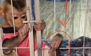 The troop of macaques had been traveling along their usual foraging route that bordered a grove of tall rubber trees. For adult monkeys, the high branches posed no challenge, but for a newborn only days old, every step was uncertain. While clinging to its mother’s chest, the tiny infant attempted to adjust its grip. That single moment of misjudgment was enough. The newborn slipped, tumbling through a cluster of branches before landing painfully among the thick roots of a rubber tree below.