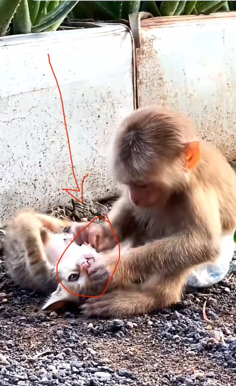 In a remote forest edge near a small village in Southeast Asia, an unusual bond between two animals stunned a group of onlookers and became a tale that warmed hearts across the internet. A tiny kitten, barely three months old, found itself in a life-threatening situation after a curious snack turned into a choking hazard. The unlikely hero? A monkey known to the villagers as Chiku.