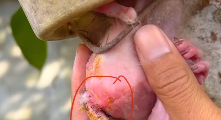 At dawn, when the forest should echo with birdsong and the soft movements of waking animals, a different sound broke the calm—a faint, distressed cry. Hidden beneath leaves and branches, a crude poacher’s trap had done what it was designed to do. Caught within it was a newborn monkey, no more than a few days old, separated from its mother and left helpless in a world that suddenly turned hostile.