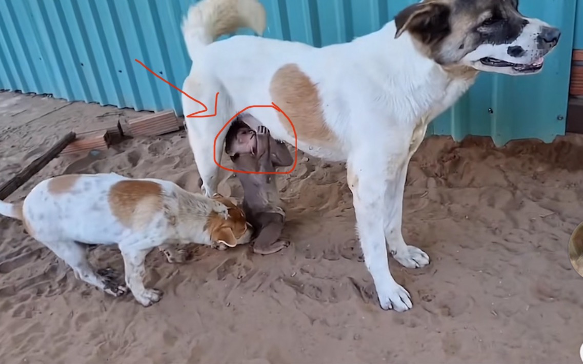 Witnesses were stunned as the dog brought the baby monkey to a shaded area and began licking and grooming it. She kept the monkey close, protecting it from the scorching sun and other animals. Over the following days, the dog nursed and cared for the infant as if it were her own.