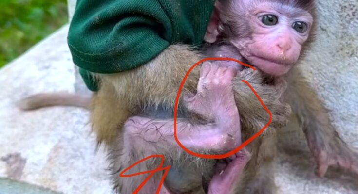 For newborn monkeys, a mother is everything. She provides nourishment through milk, regulates the infant’s body temperature, carries it through the trees, and protects it from predators. Without her, a newborn has almost no chance of survival. Its body is too weak to forage, its senses are still developing, and its cries often go unheard in the vastness of the forest. When this infant lost its mother—whether due to predation, illness, or human disturbance—it was left clinging to branches with instinct alone guiding it.